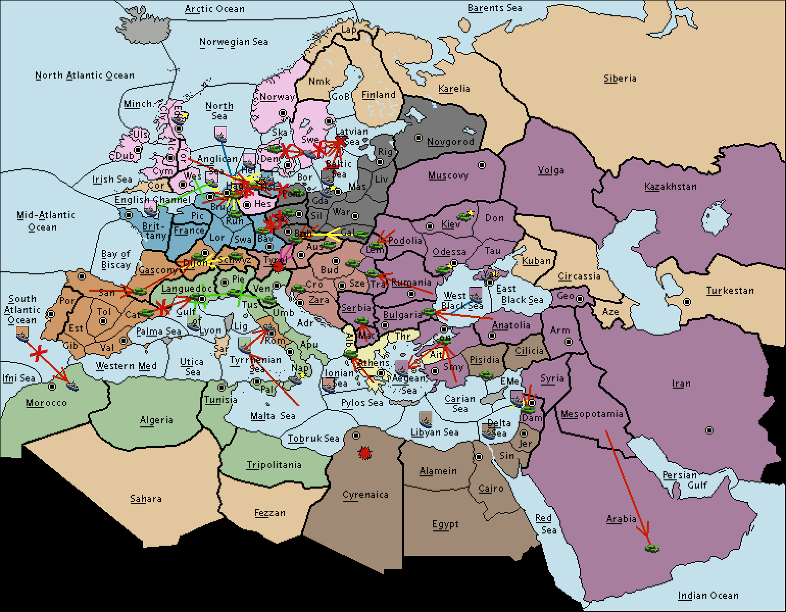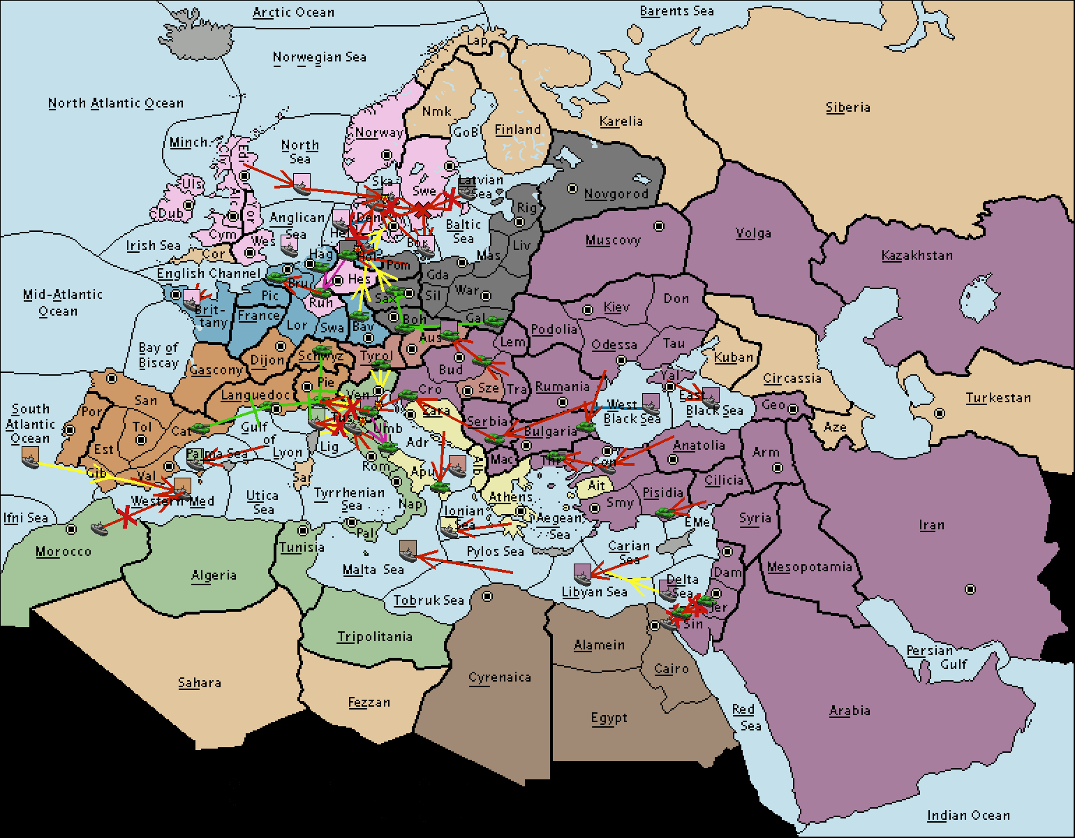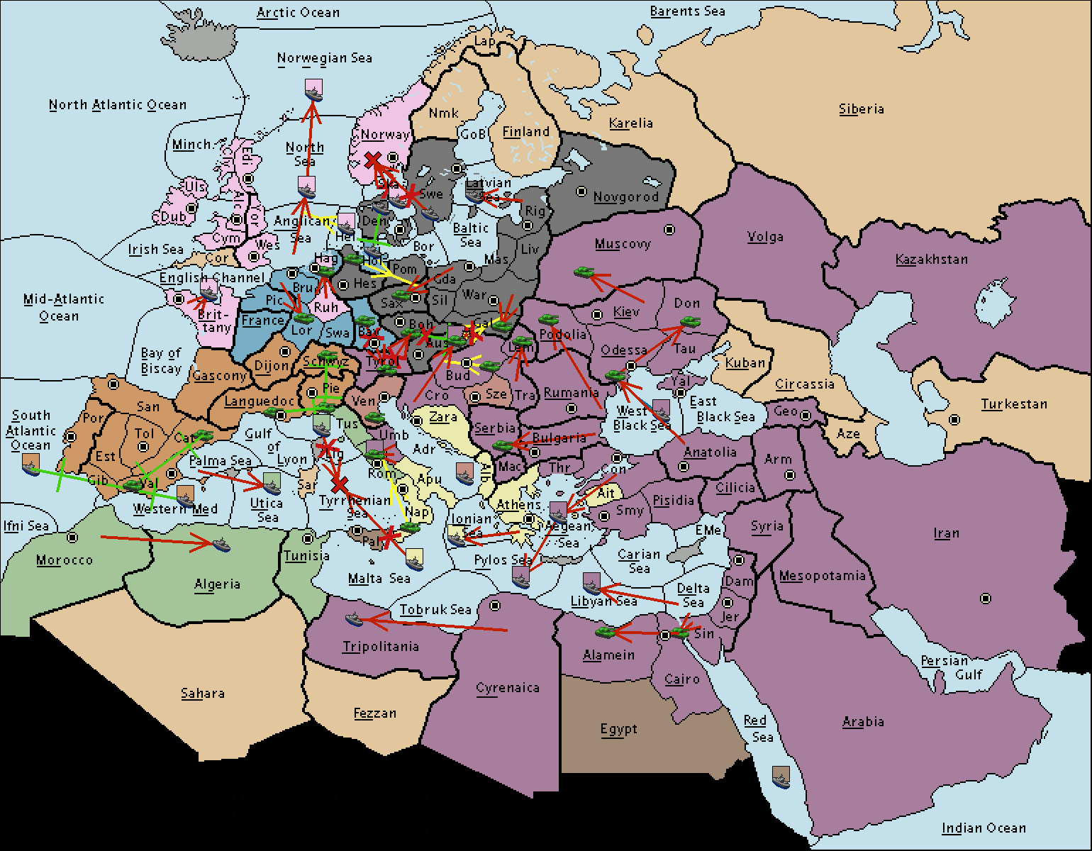 The fleet at Tyrrhenian Sea move to Utica Sea.
