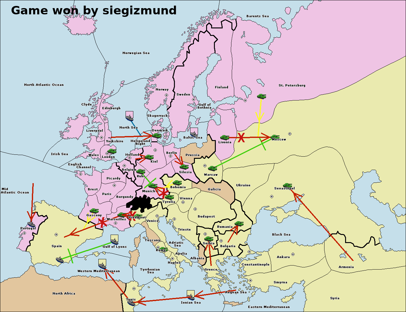 The fleet at Bulgaria (South Coast) move to Greece.