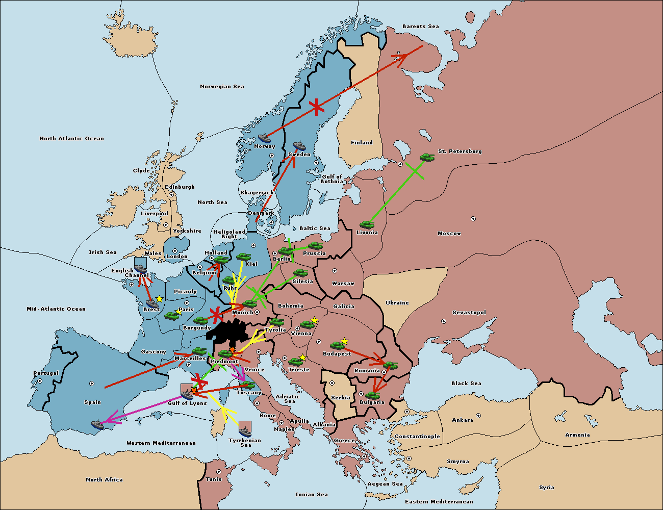 The fleet at Spain (South Coast) support hold to Marseilles.