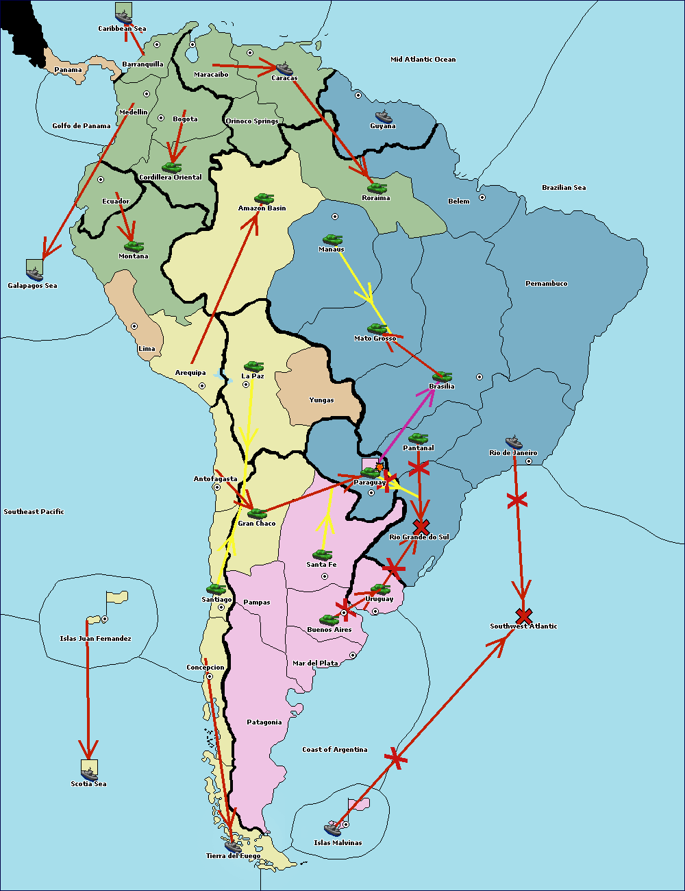 The fleet at Mid Atlantic Ocean move to Brazilian Sea.