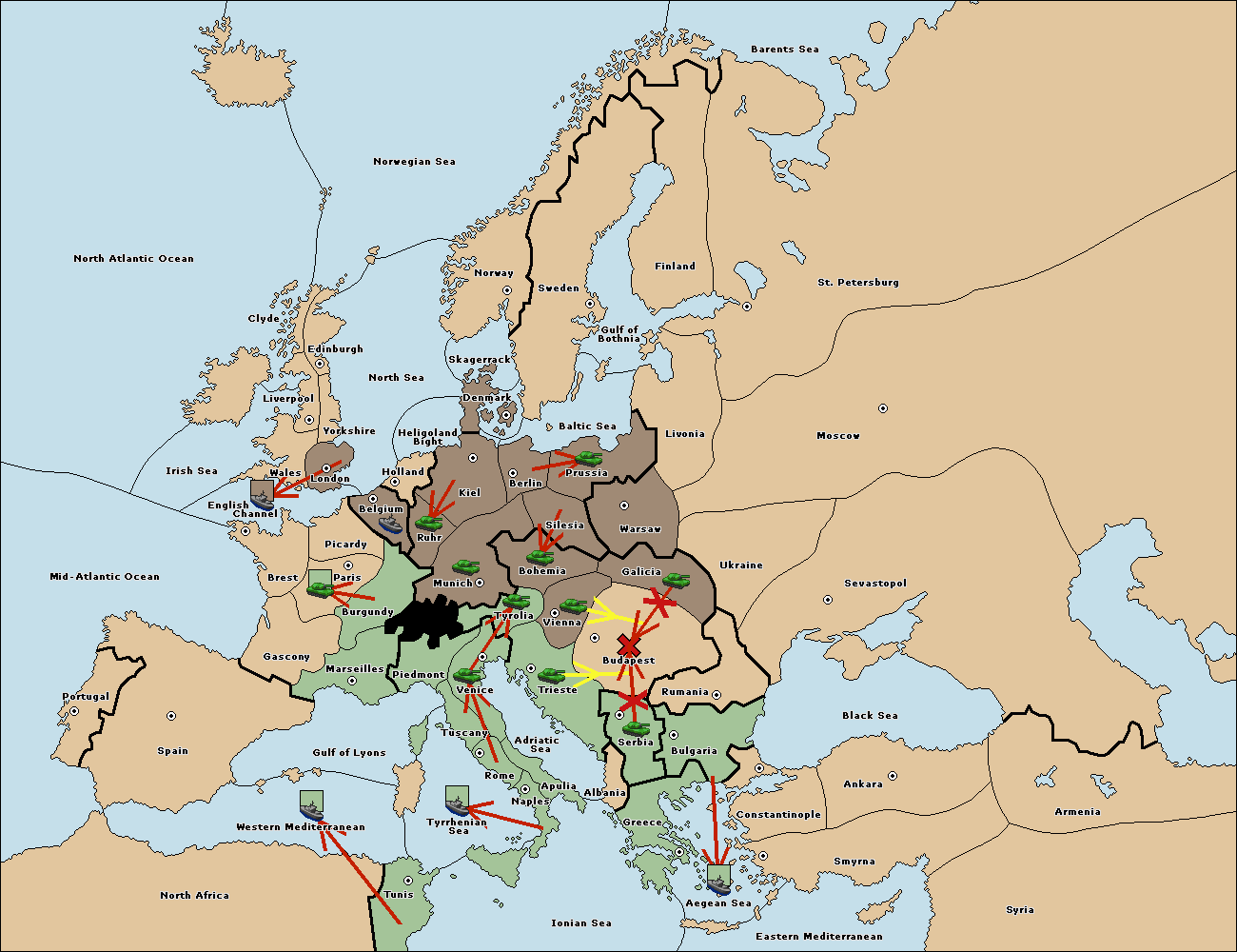 The fleet at Bulgaria (South Coast) move to Aegean Sea.