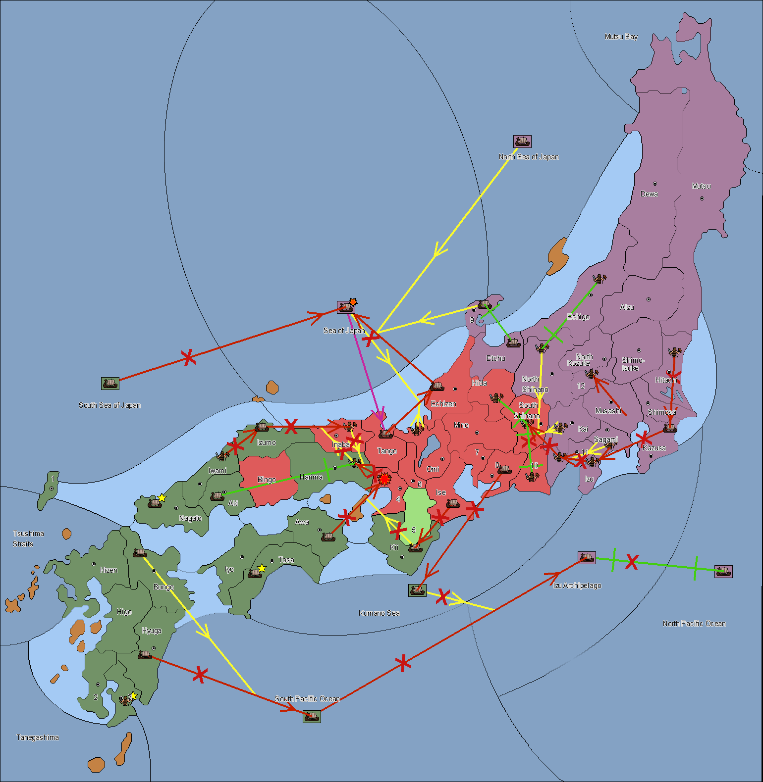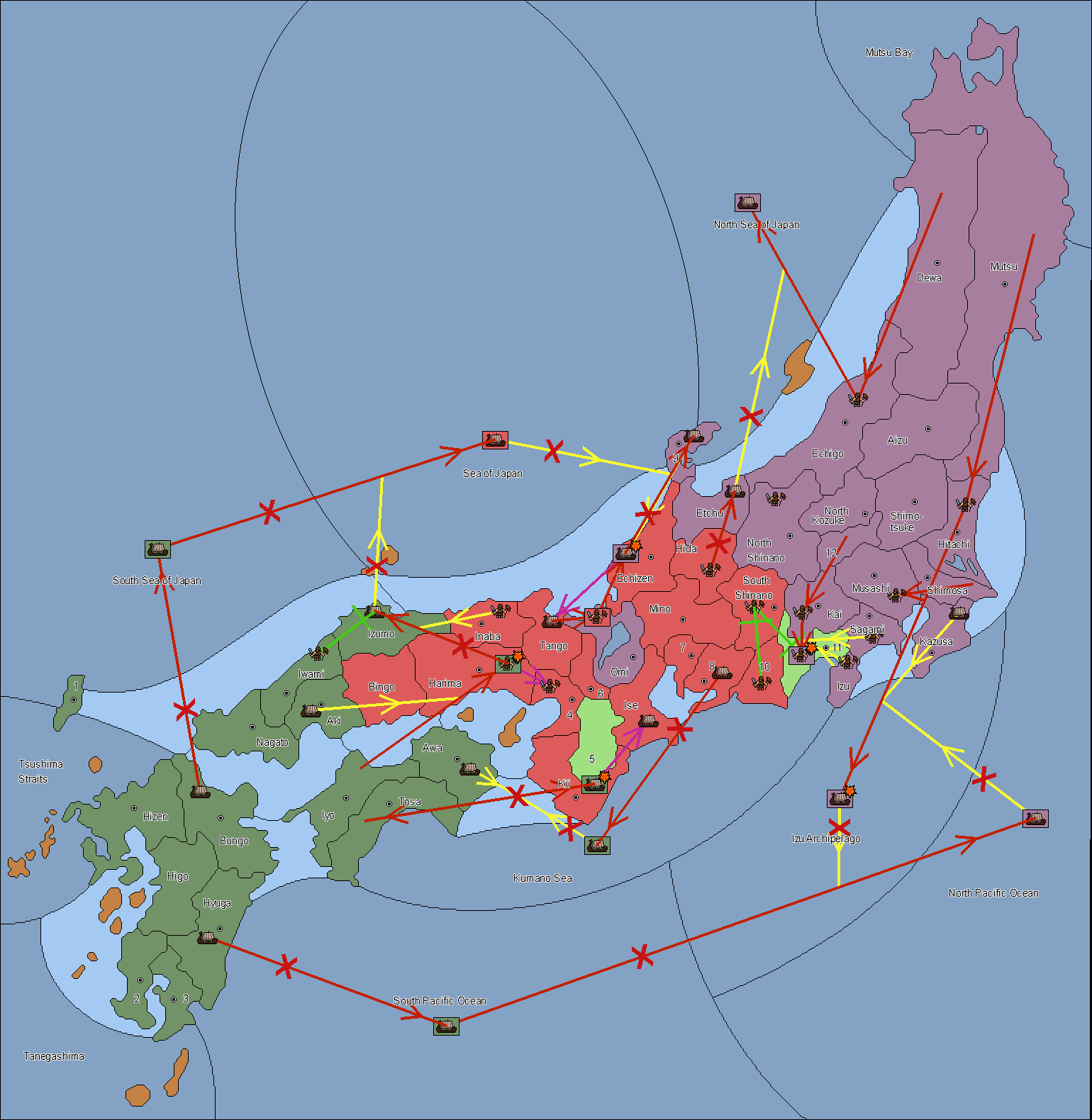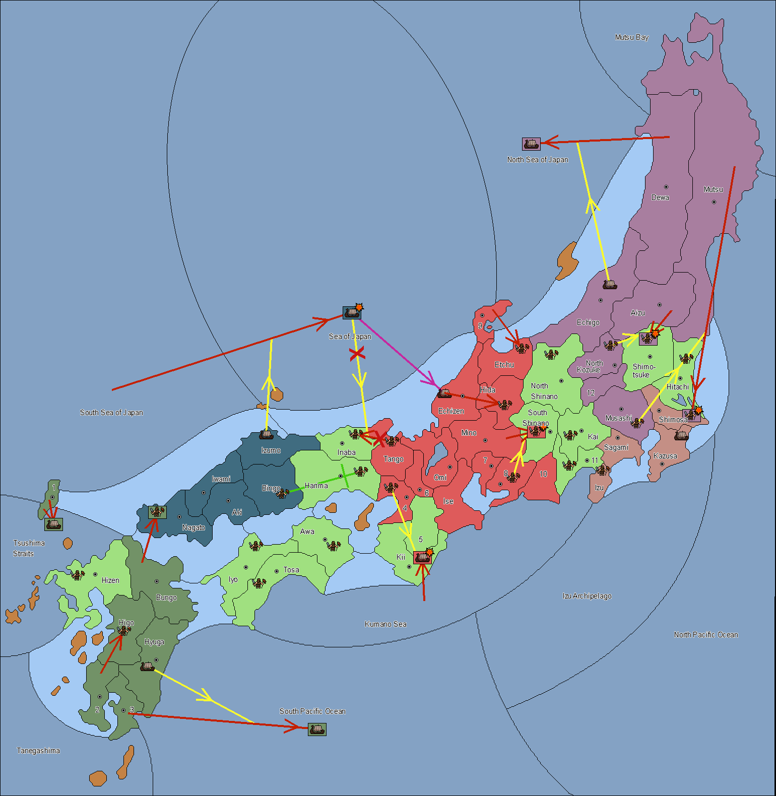 The fleet at South Sea of Japan support move to Tsushima (1) from Tsushima Strait.