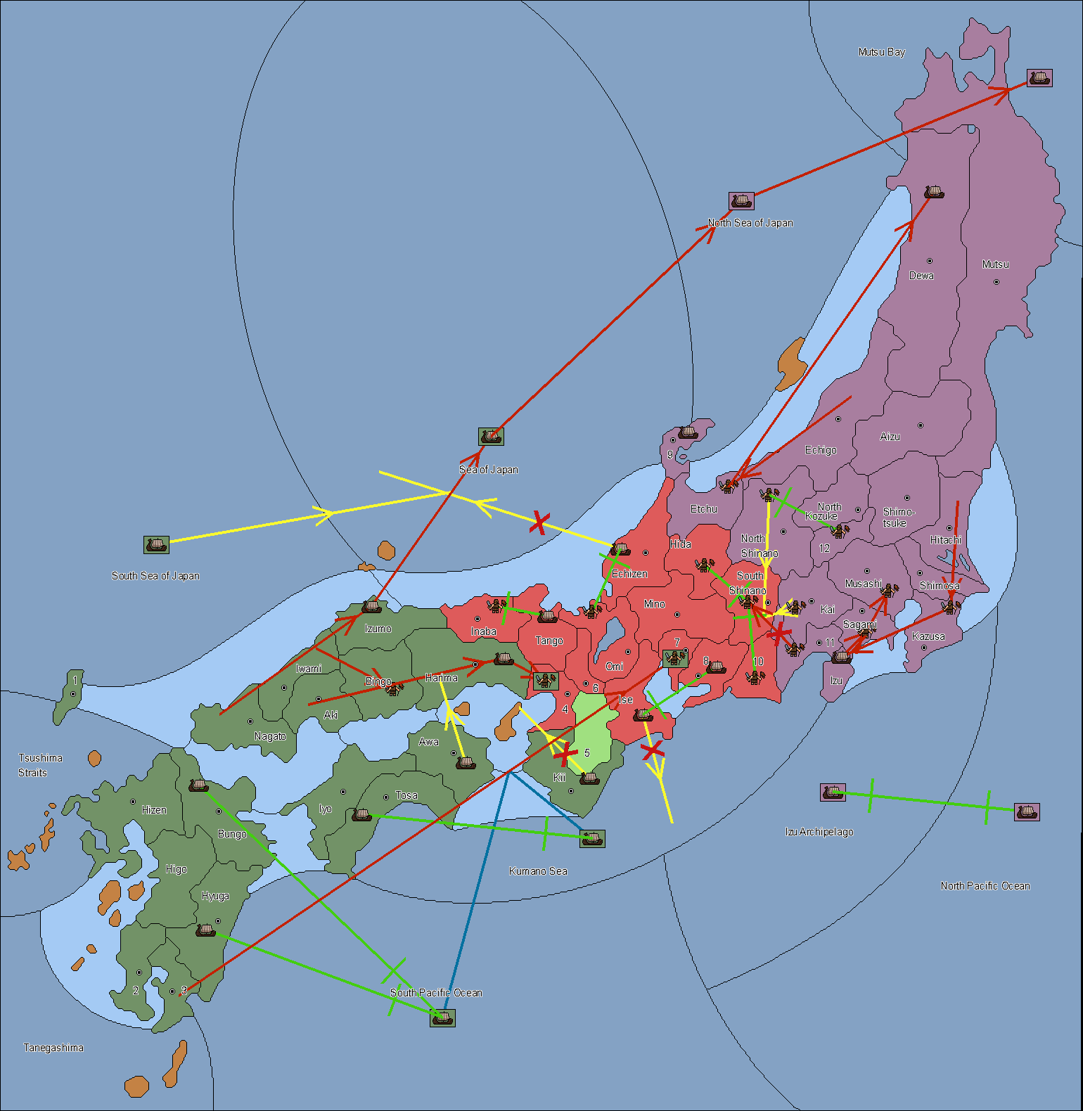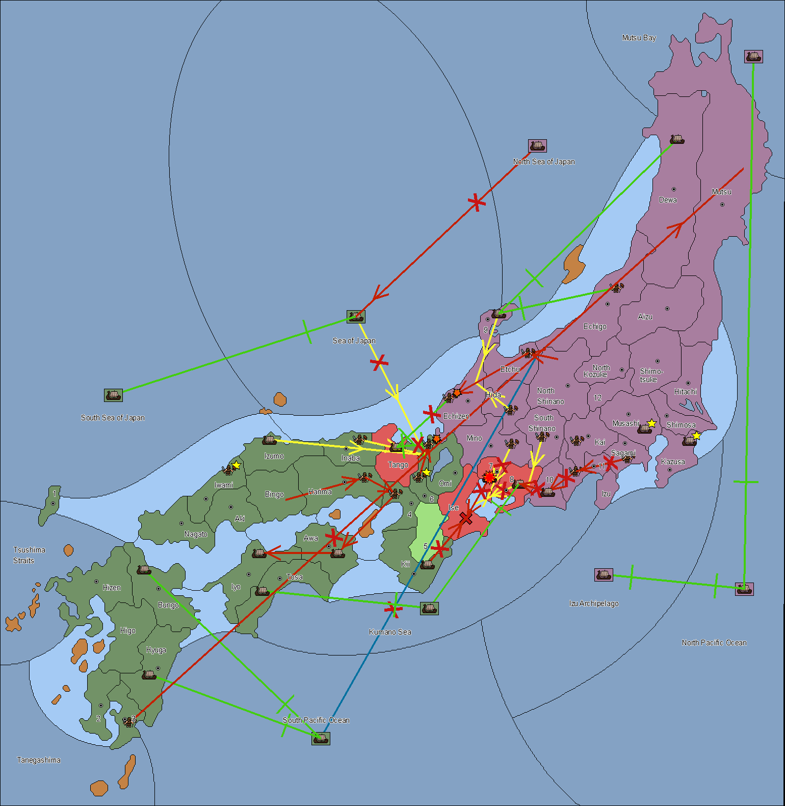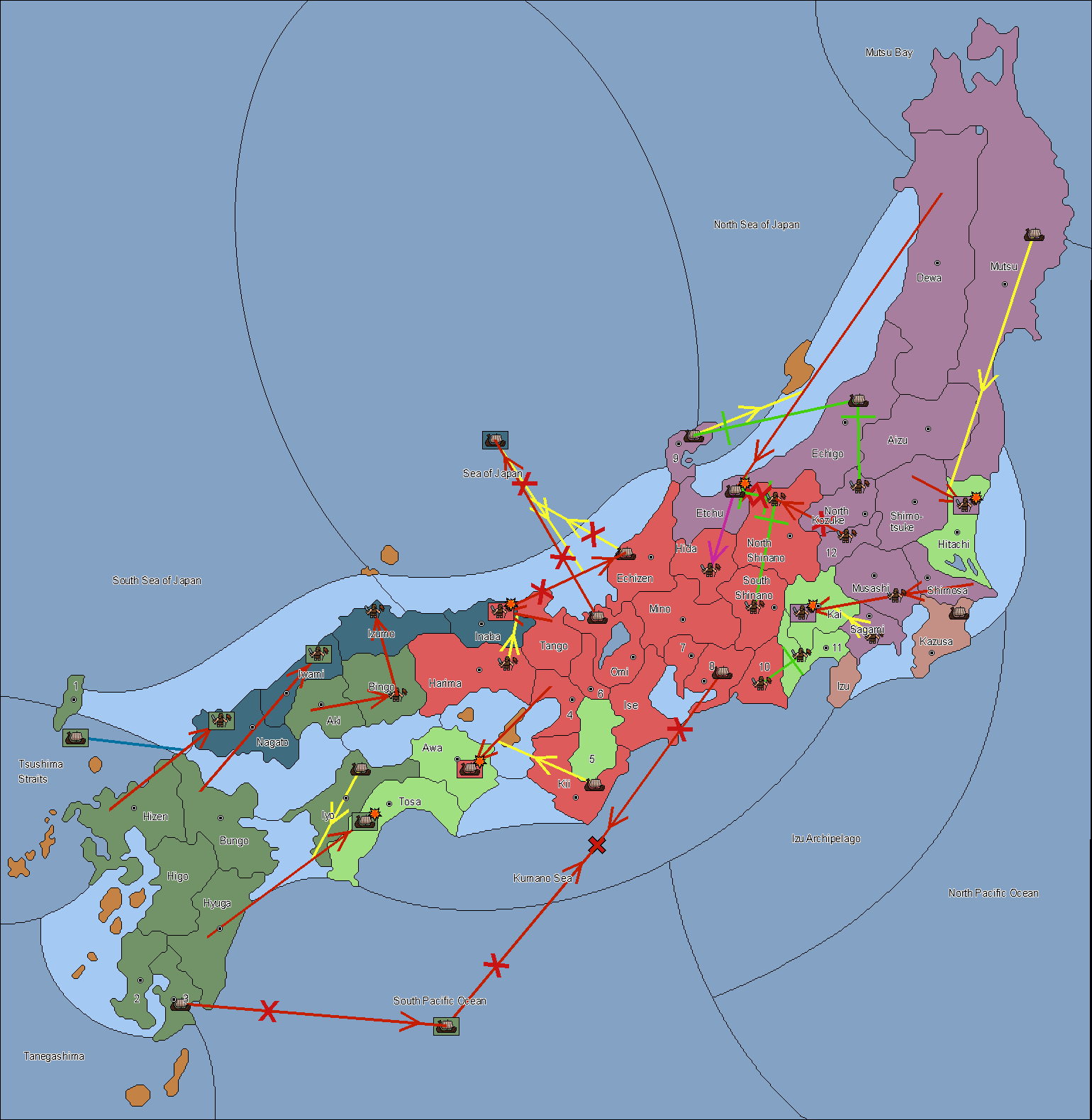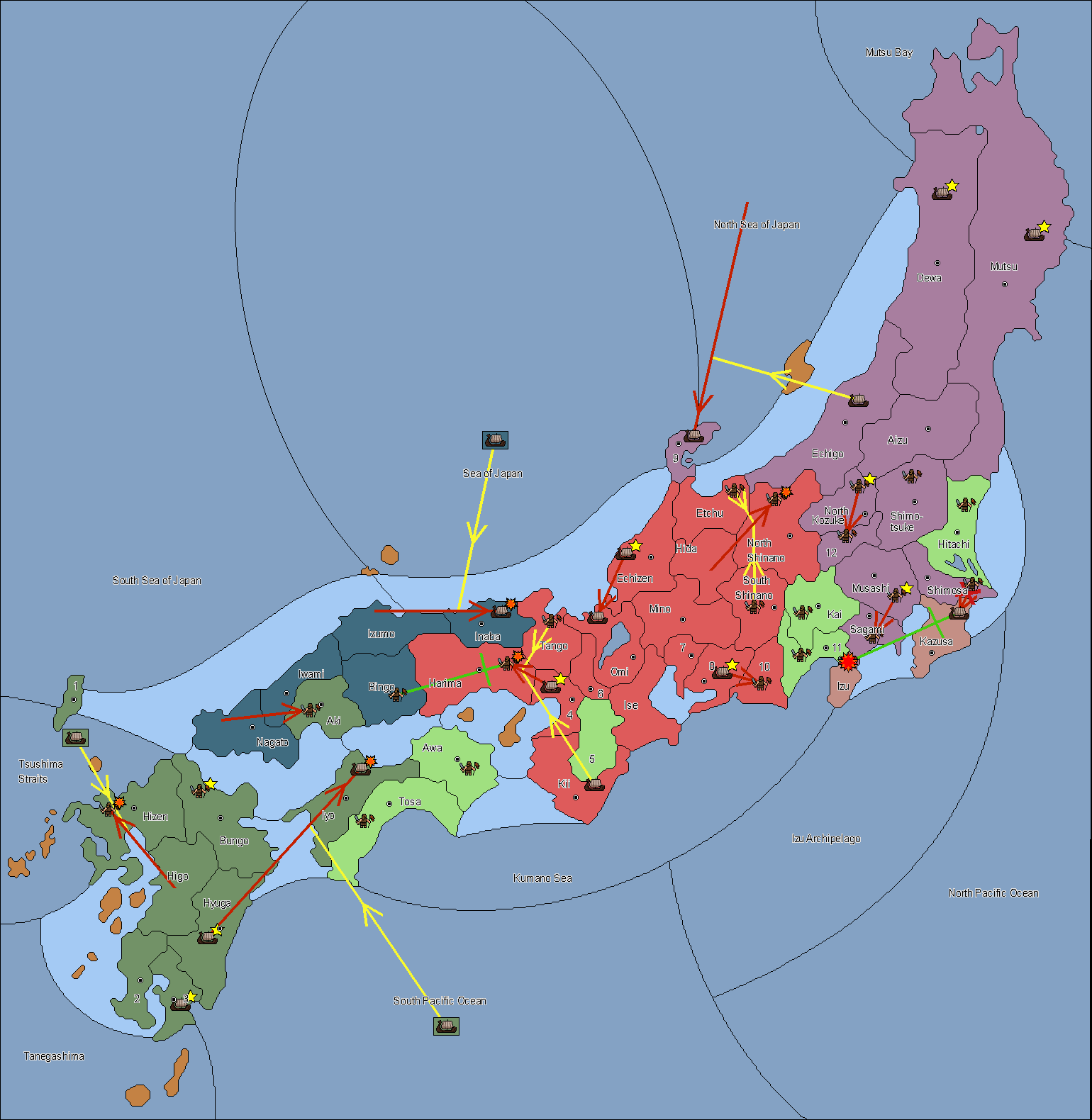 The fleet at South Sea of Japan support move to Tsushima (1) from Tsushima Strait.