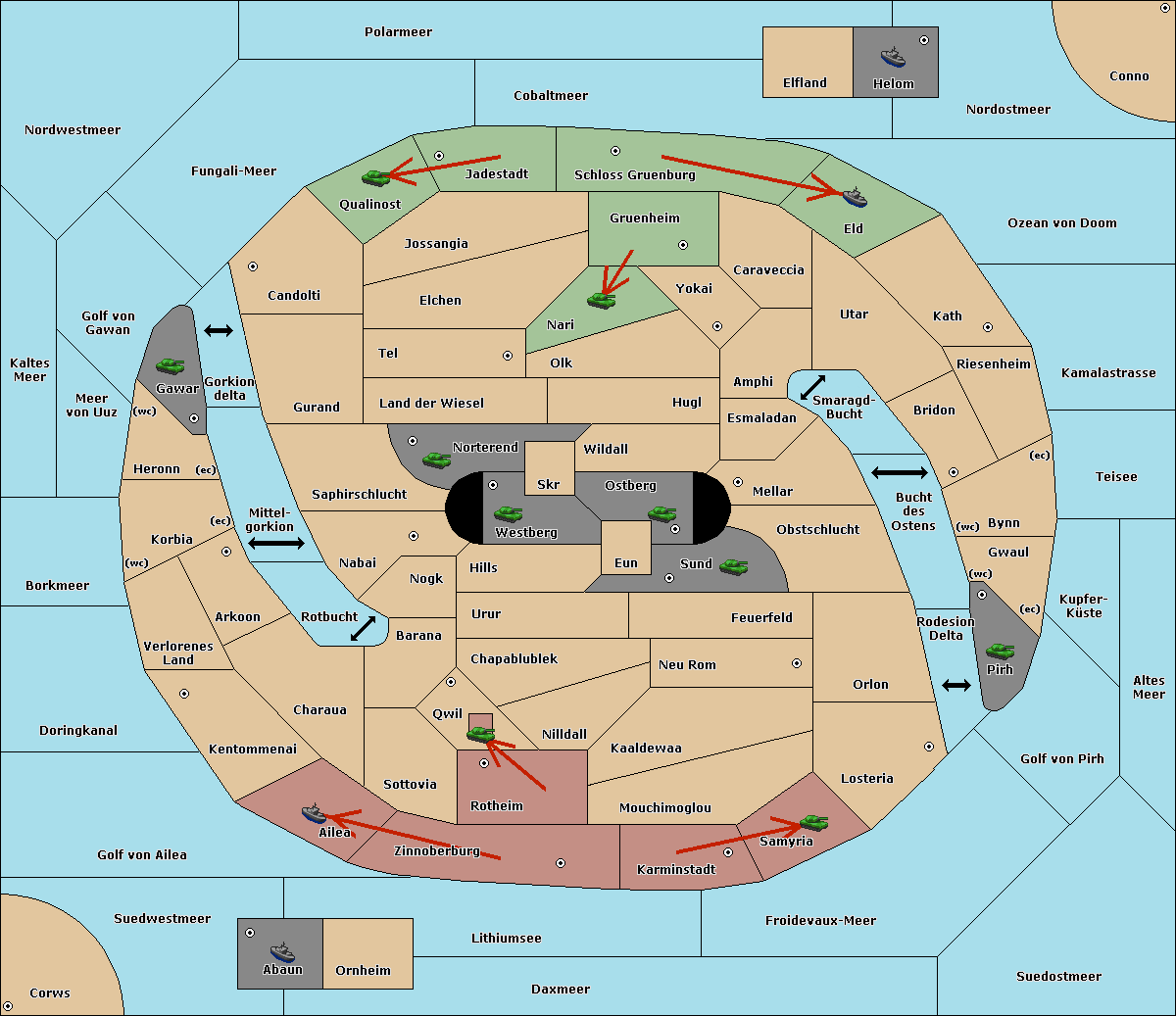 The army at Verlorenes Land move to Arkoon.