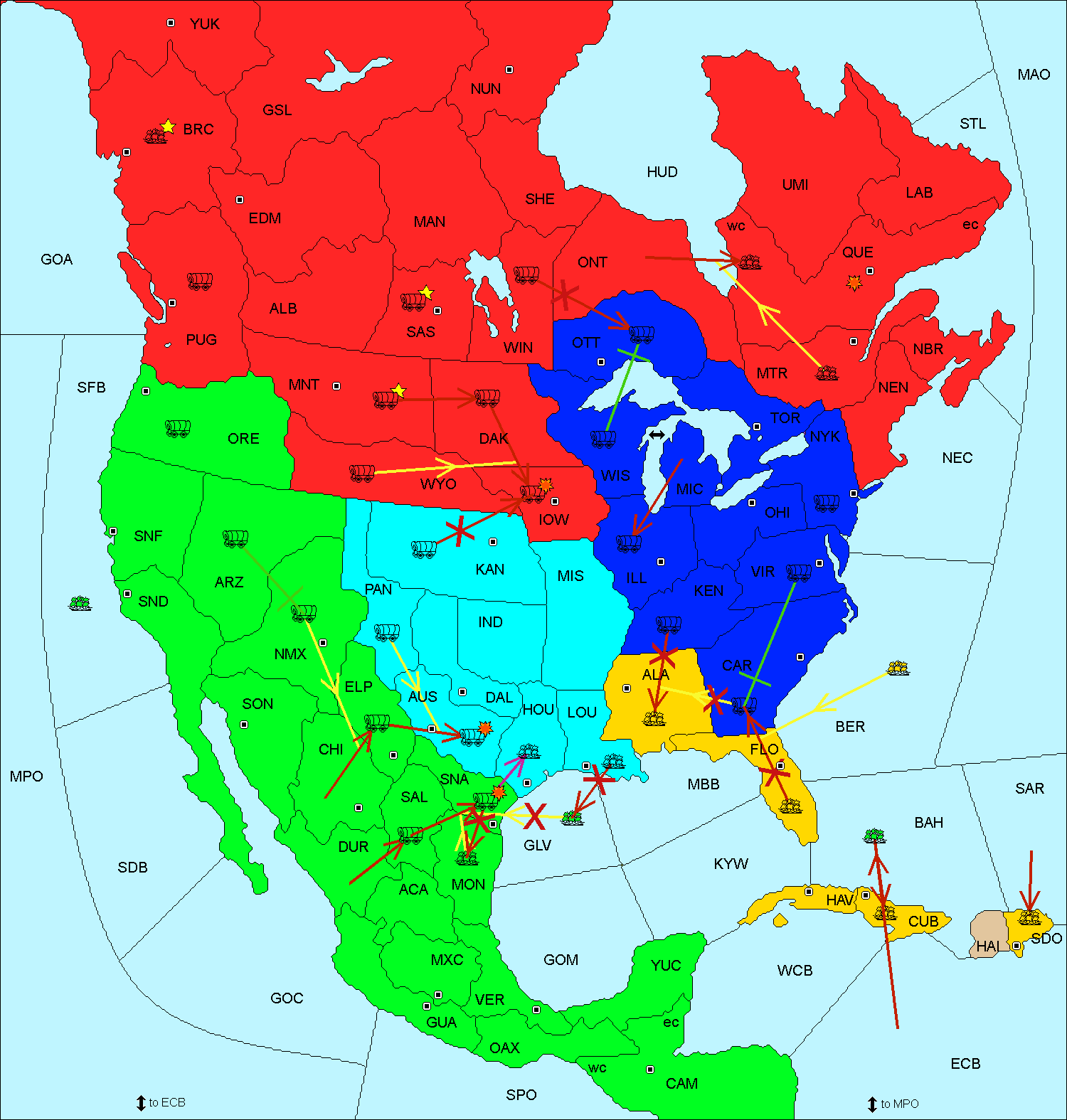 The fleet at Yucatan move to Central America (East Coast).
