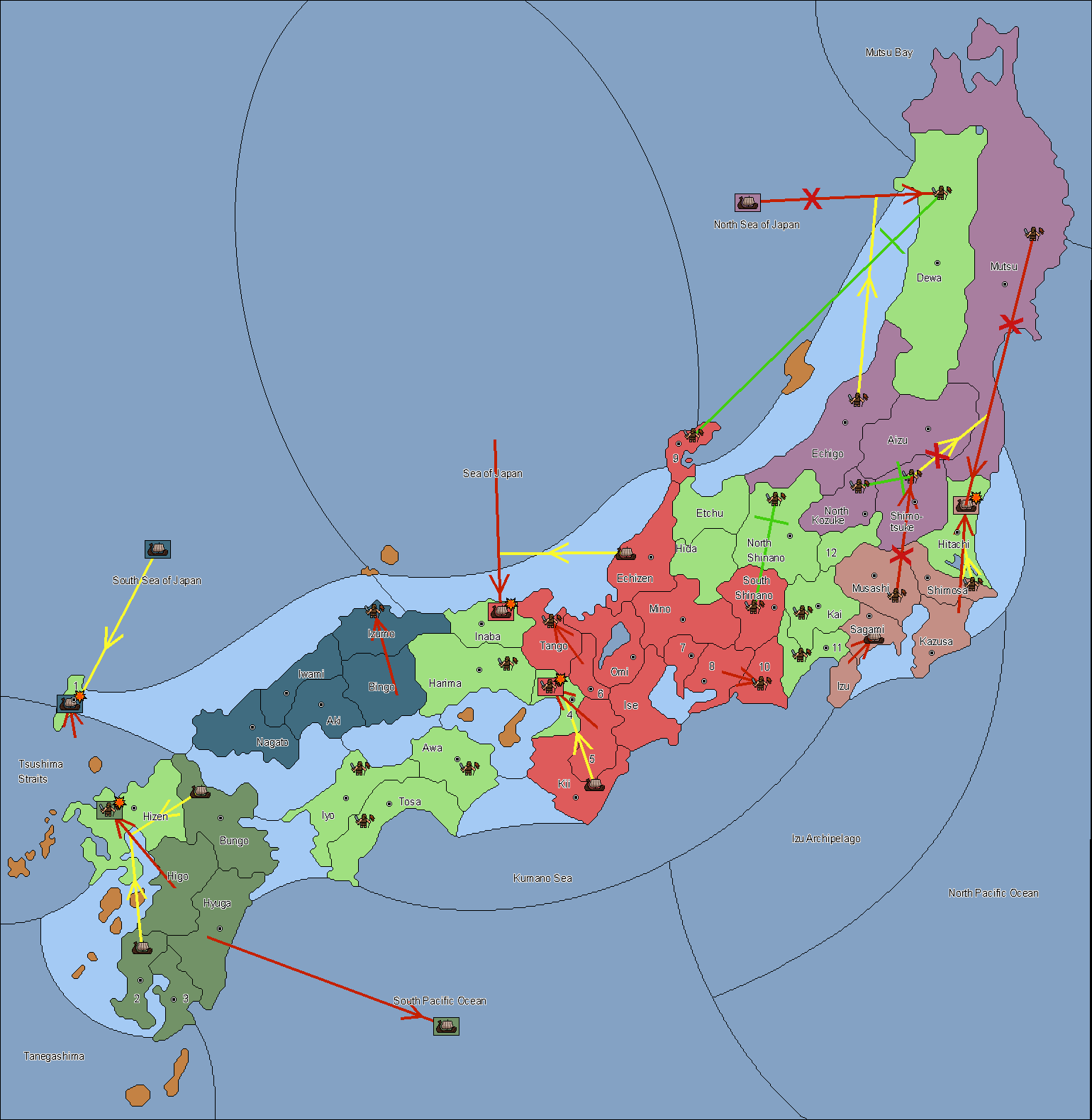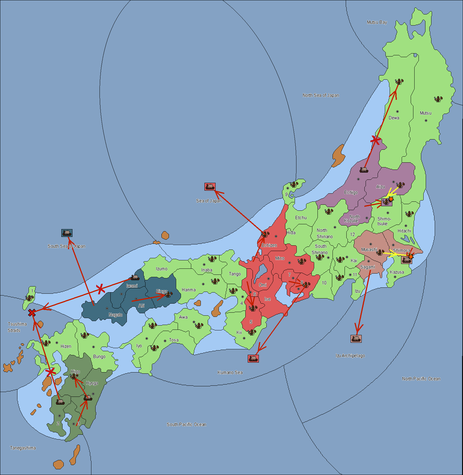 The fleet at South Sea of Japan support move to Tsushima (1) from Tsushima Strait.