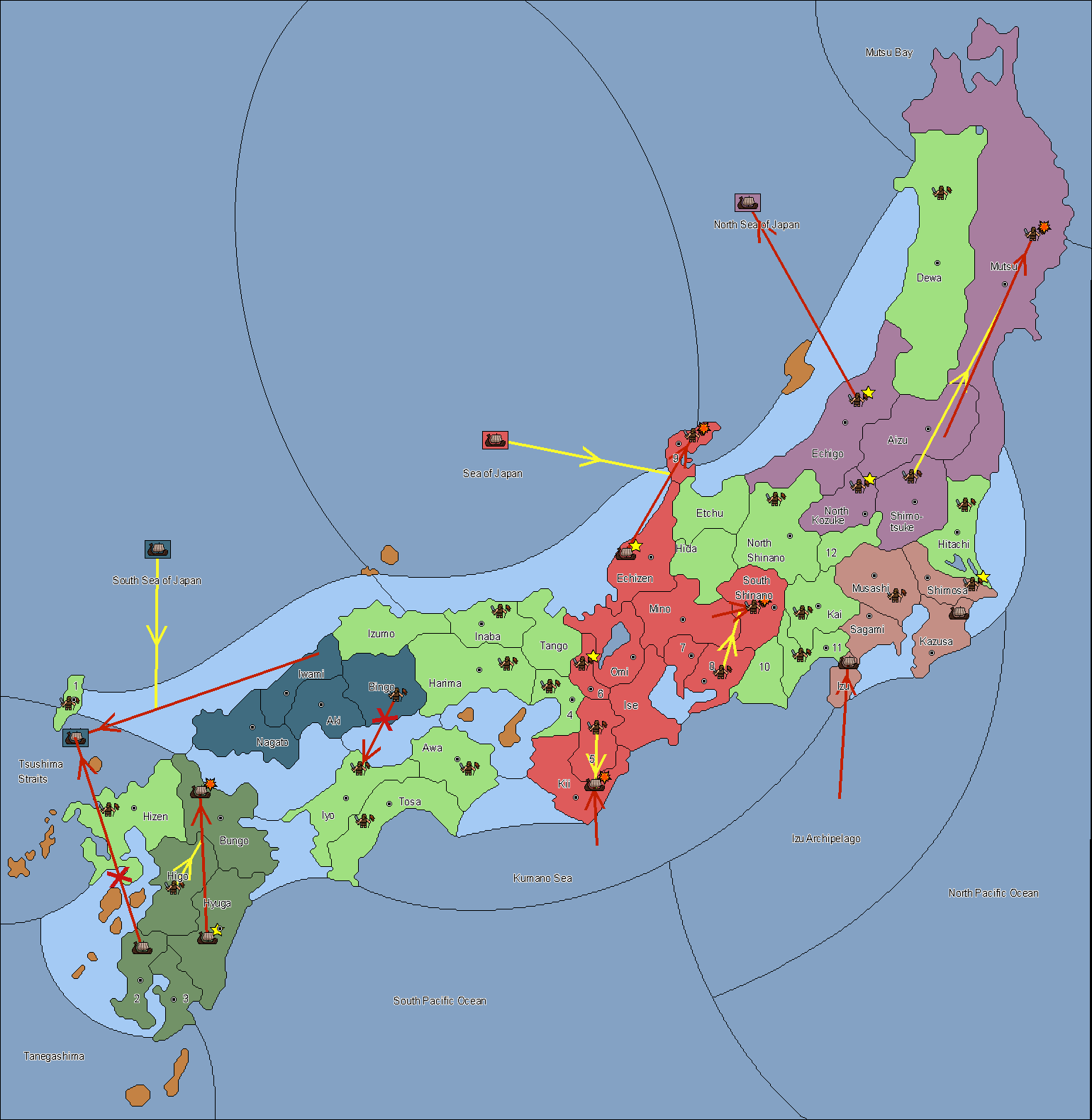 The fleet at Noto (9) support move to Echigo from Etchu.