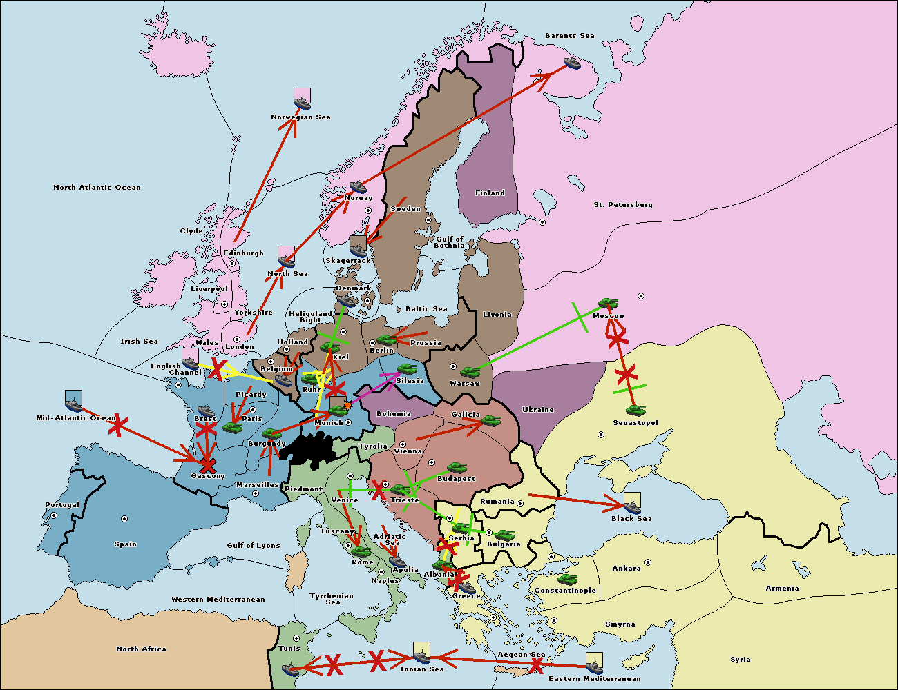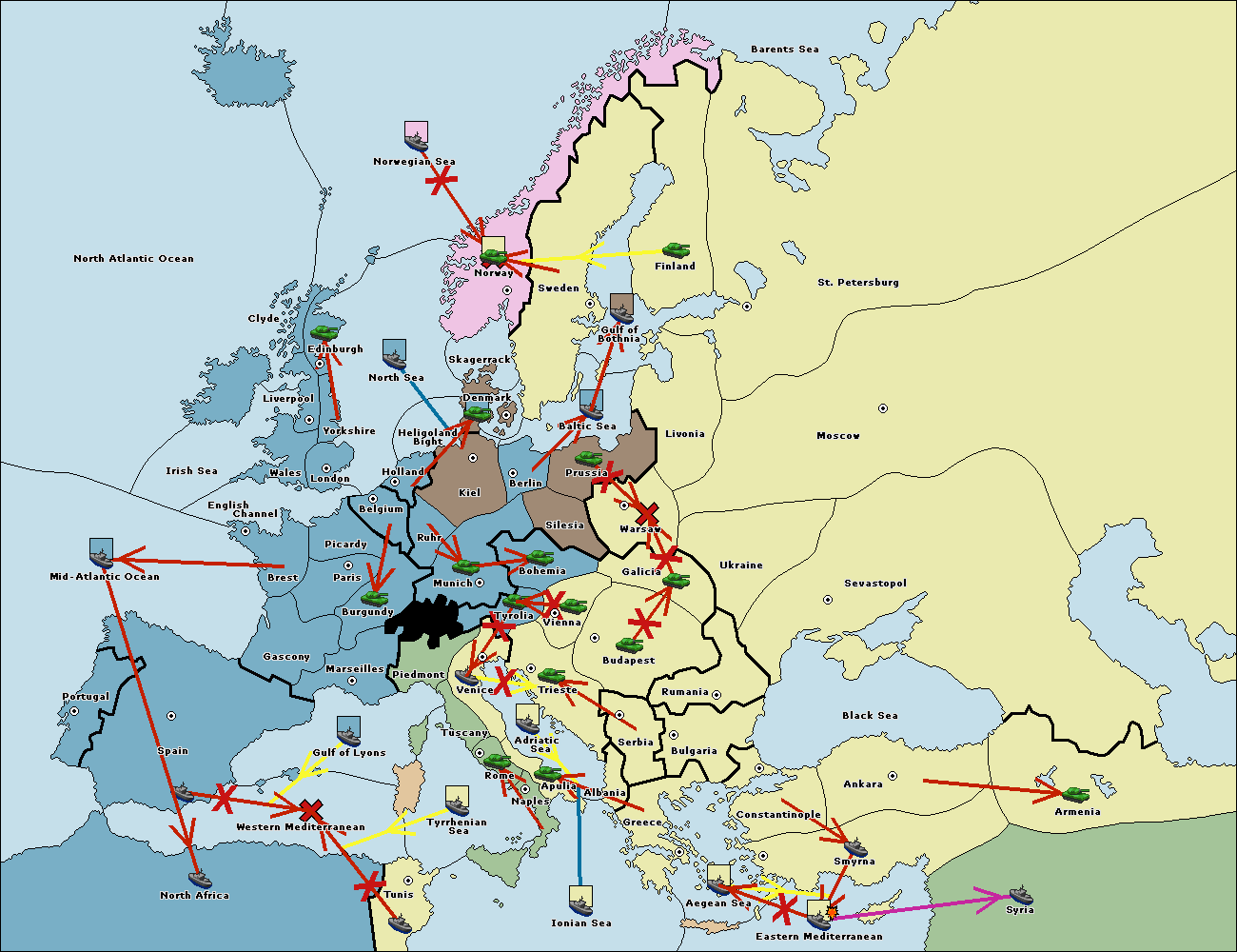 The fleet at Mid-Atlantic Ocean move to Western Mediterranean.