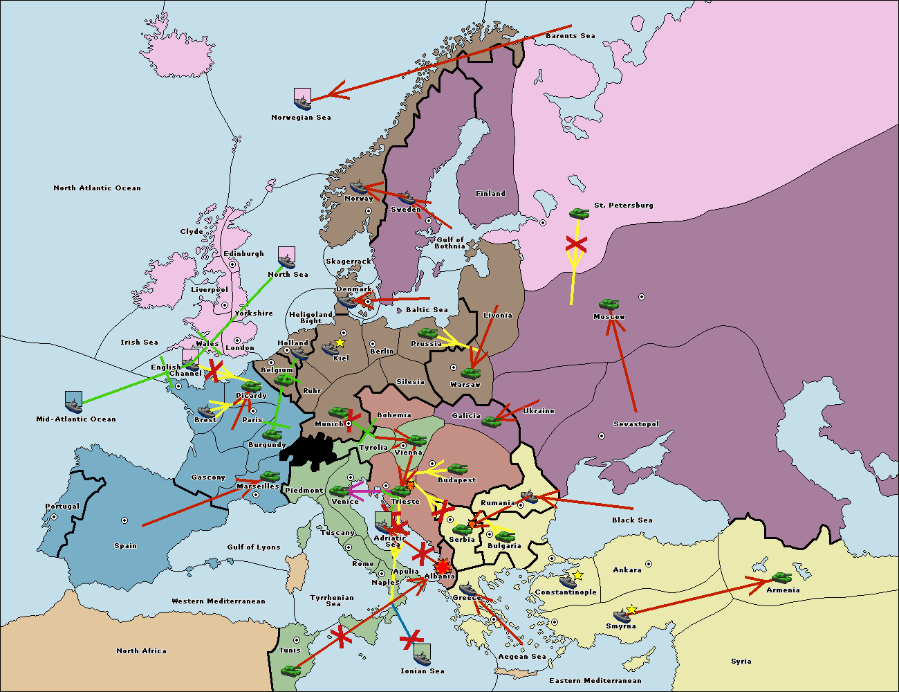 The army at Trieste support move to Albania from Tunis.
