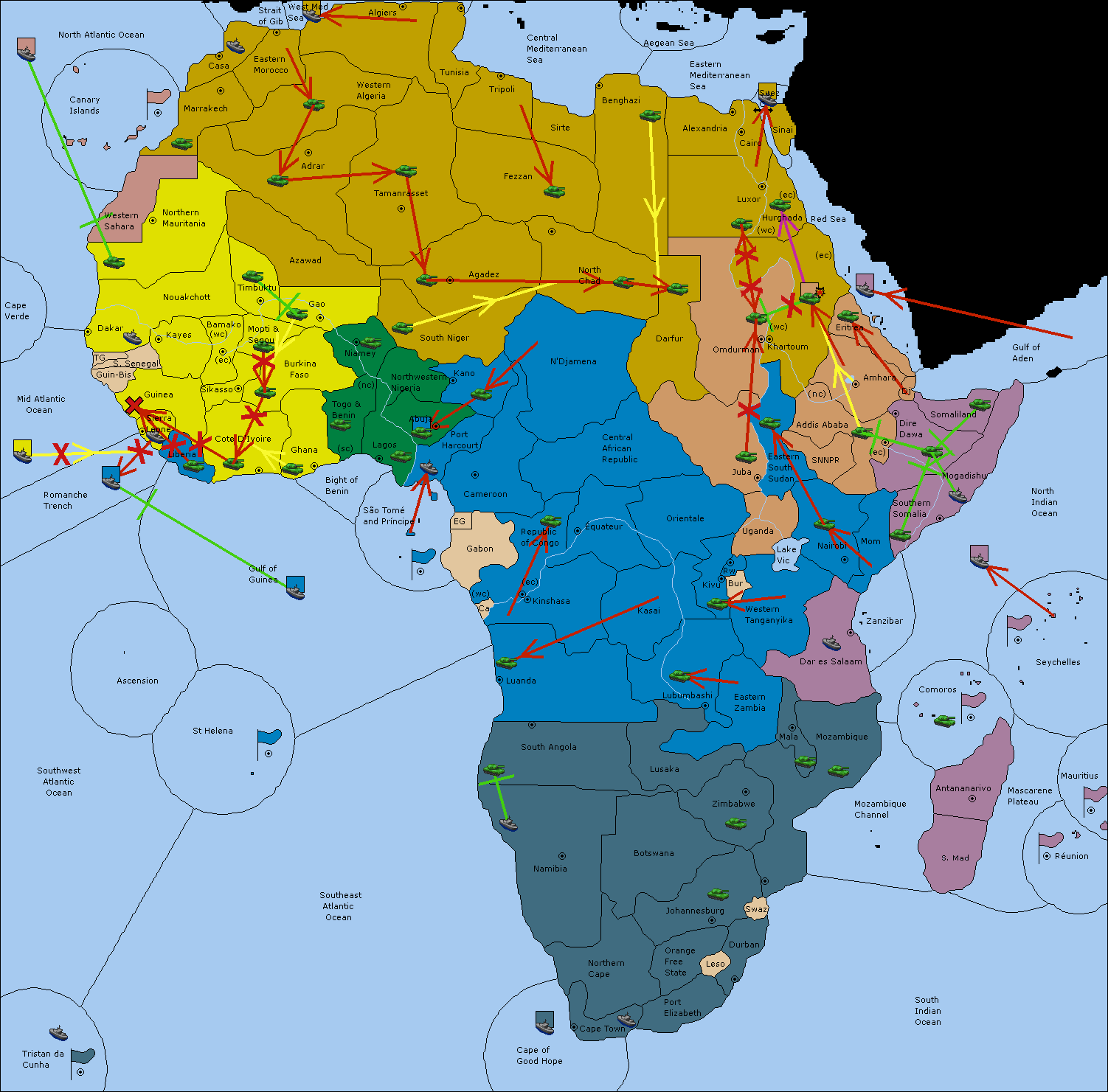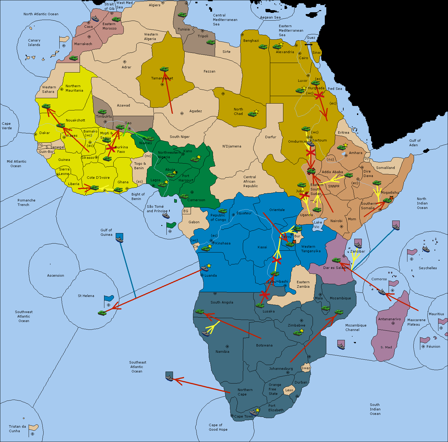The fleet at Khartoum (West Coast) move to Addis Ababa (North Coast).