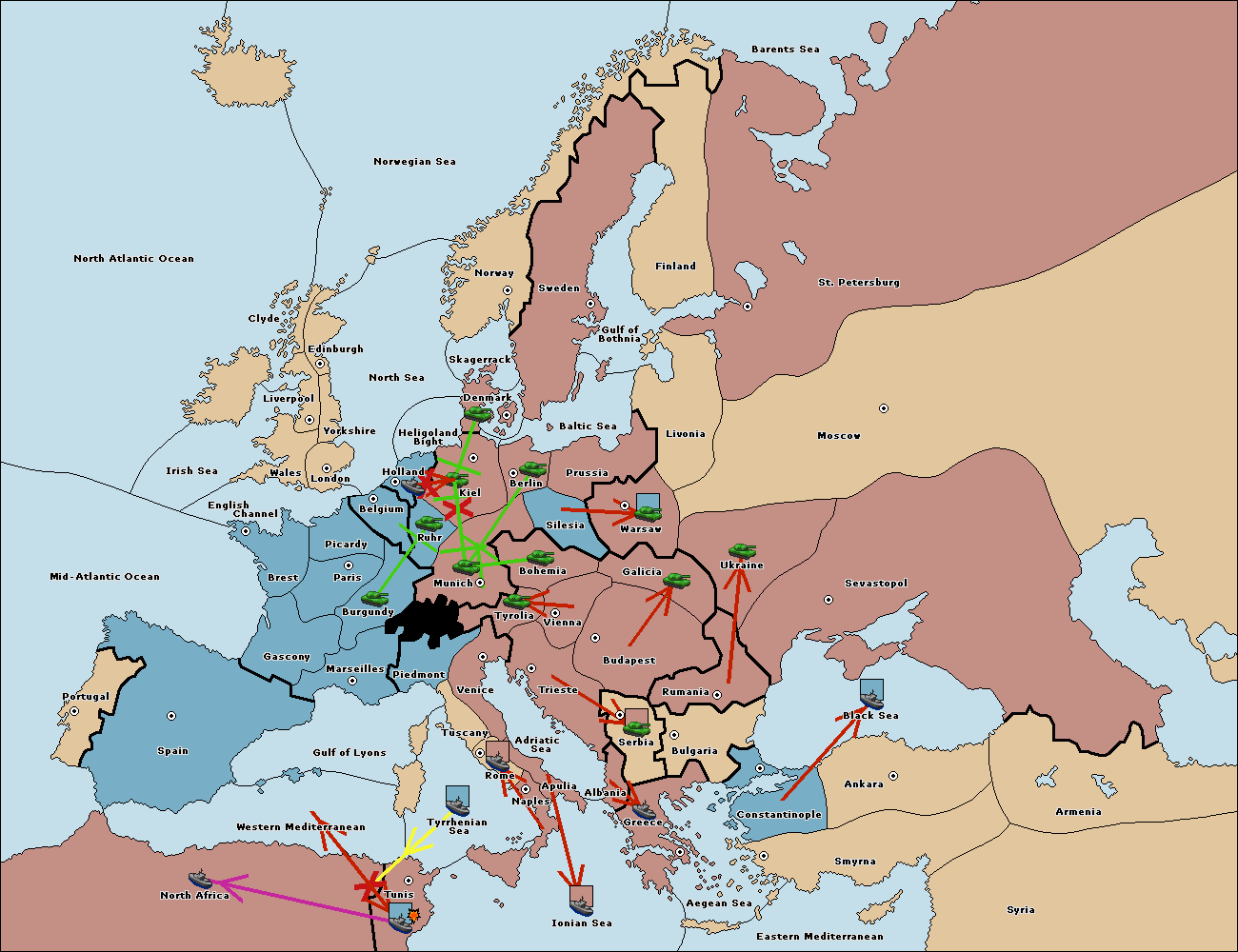 The fleet at North Africa support move to Tunis from Ionian Sea.