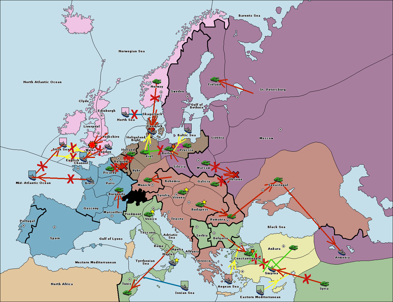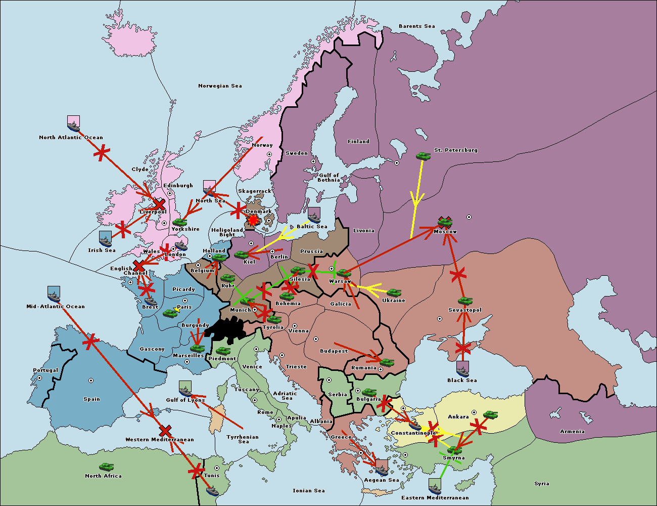 The fleet at Mid-Atlantic Ocean move to Western Mediterranean.