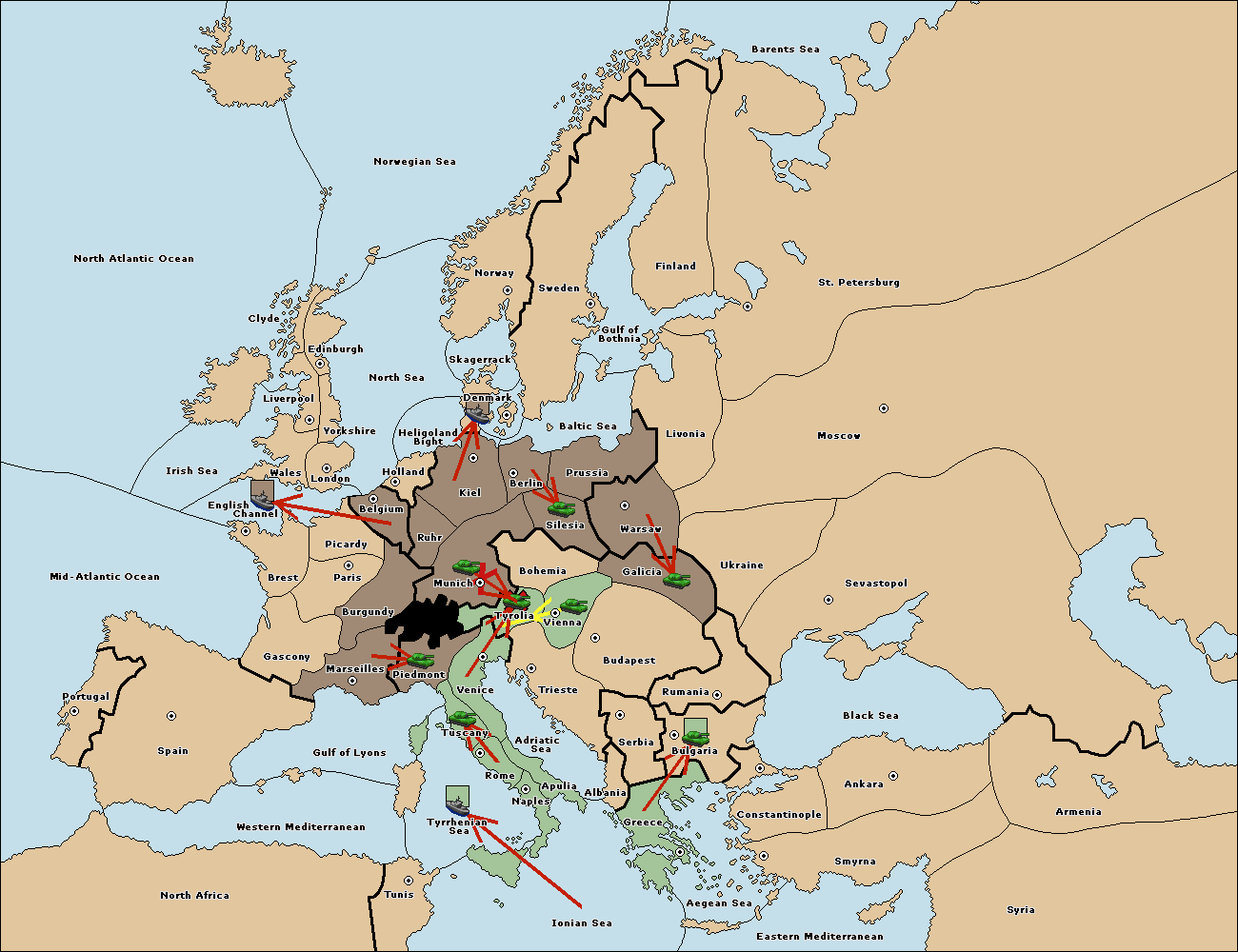 The fleet at Spain (South Coast) support move to Marseilles from Gulf of Lyons.
