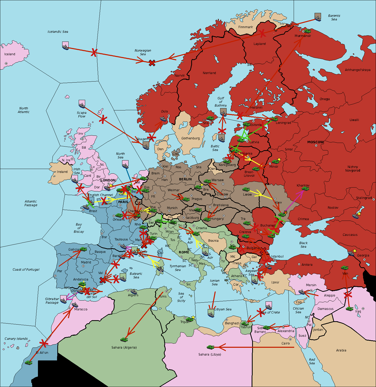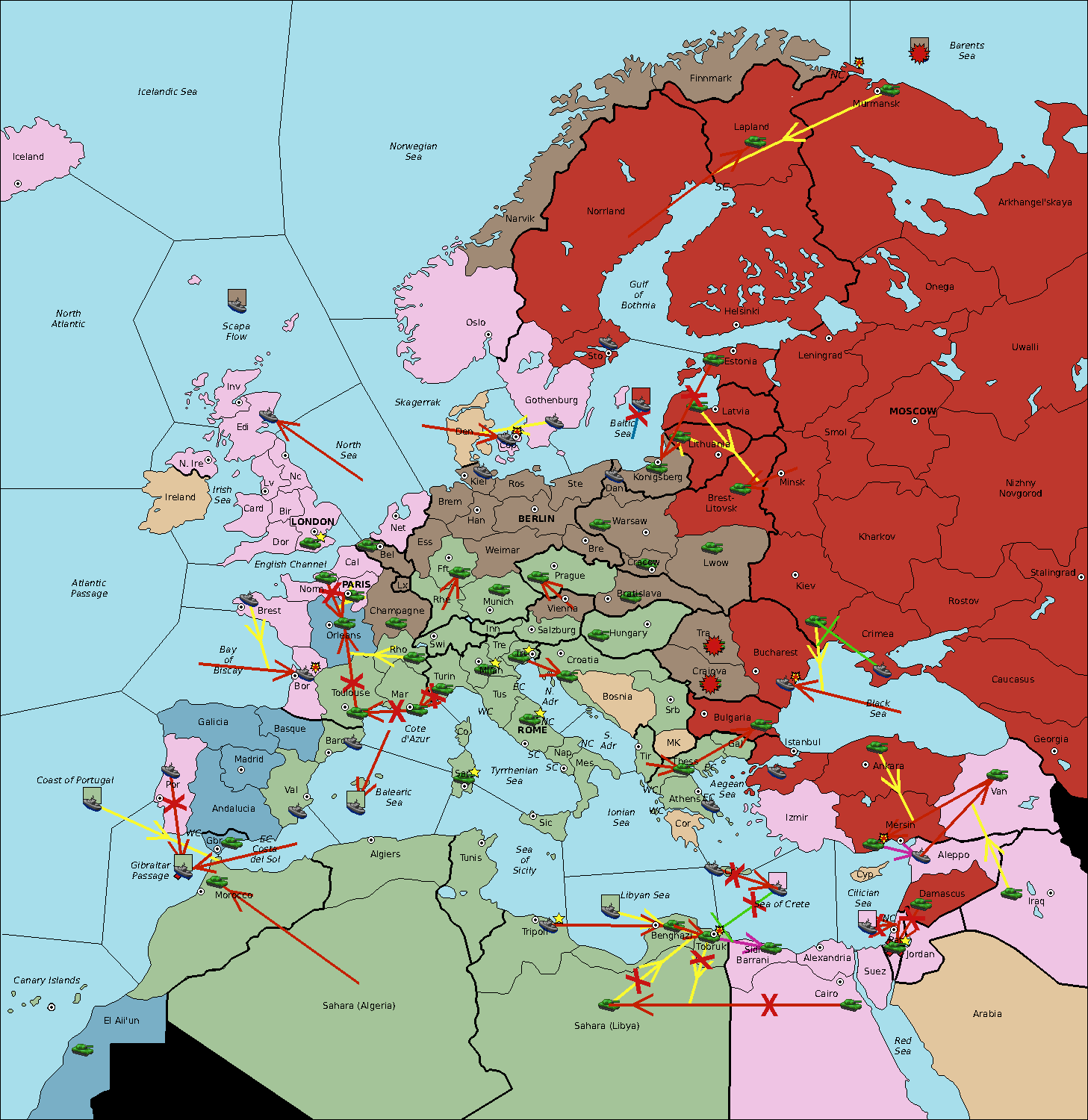 The fleet at Sea of Sicily move to Sardinia.
