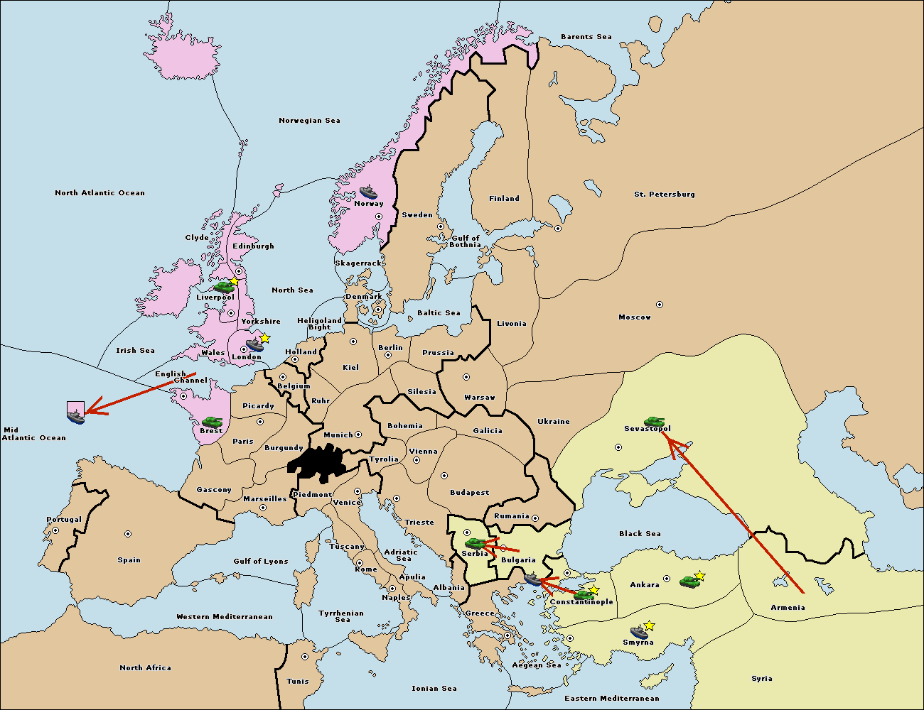 The fleet at Mid-Atlantic Ocean move to Western Mediterranean.