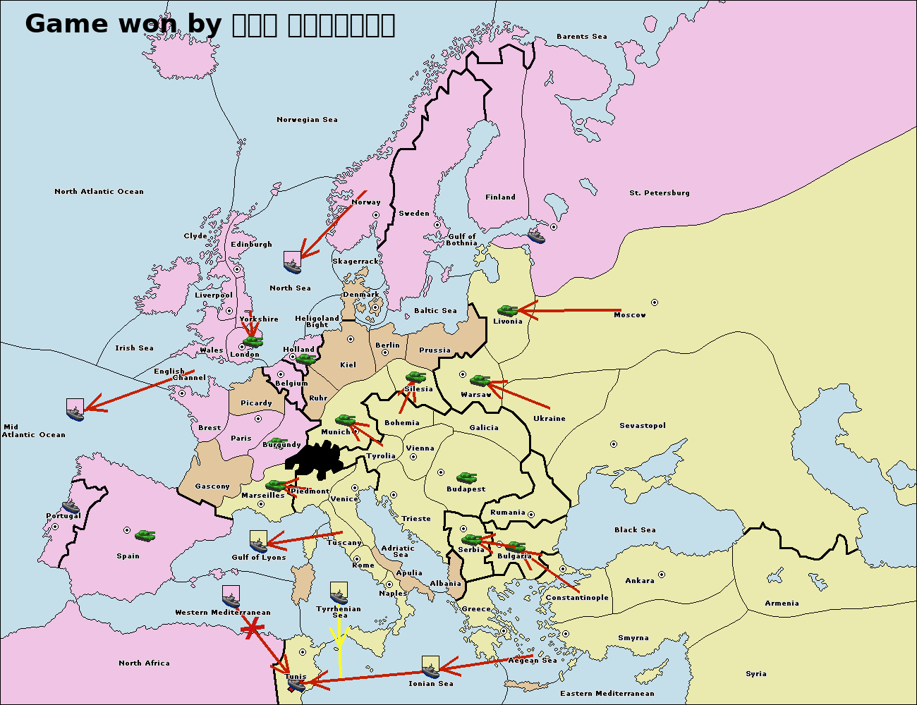 The fleet at Tyrrhenian Sea support move to Tunis from Ionian Sea.